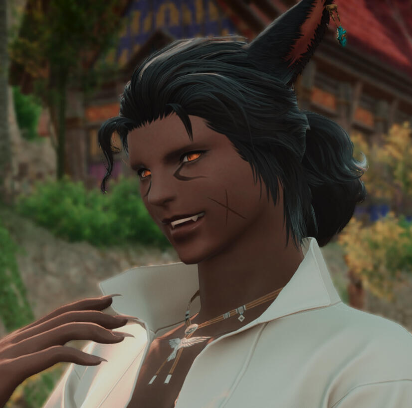 J'ehster - From the memories Sigrid showed of him, he seemed someone worth saving. Li'to sacrificed himself so Sigrid could bring him back. He finds it hard to be around J'ehster on account of the sheer brightness of his soul. They are amicable, and lucky for Li'to, he spends most of his time far off on his island enjoying retirement.Geva - Rude, harsh, and cold, she was merciless with her berating of the young leatherworker. At first he saw her as any Gridanian; belittling his skill as a 'mooncat'. But soon he came to understand she simply wanted to guide him with tough love. He has respect for her, and owes a lot of his refined skill to her.Mauh & Uhra Lizeh - When he killed their leader, the Coeurlclaw King, he took them with him when they had nowhere to go. He arranged a place for them to work and rest at the Rising Stones, and quickly they became like little sisters to him. They still assist Tataru and love hearing the tales of what the Scions and their newfound brother get up to.Emet-Selch - To say their relations are complicated would be the understatement of the millenia. Their 'fling' was on and off, Li'to battling the strange pangs of nostalgia vs fiery hatred in a spiral, Emet enjoying every second of it. Though, thanks to the Ancient's own sentiment for an old love, he brought Li'to back from death in Ultima Thule.